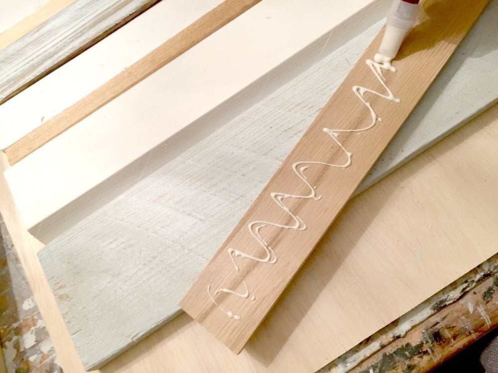 Ezután ragaszd fel a darabokat a rétegelt lemez hátlapjára. Hagyj ki 19 mm-es helyet a körben, hogy a keretet „beilleszthesd” az elülső és hátsó rétegelt lemezdarabok közé.