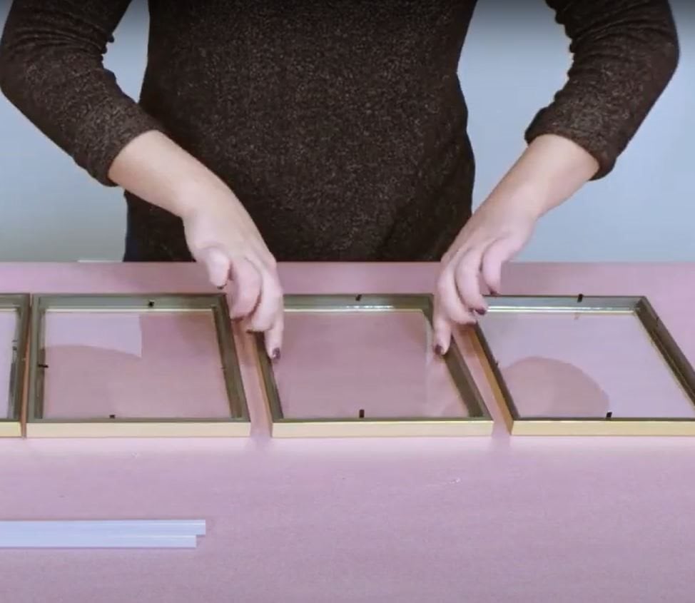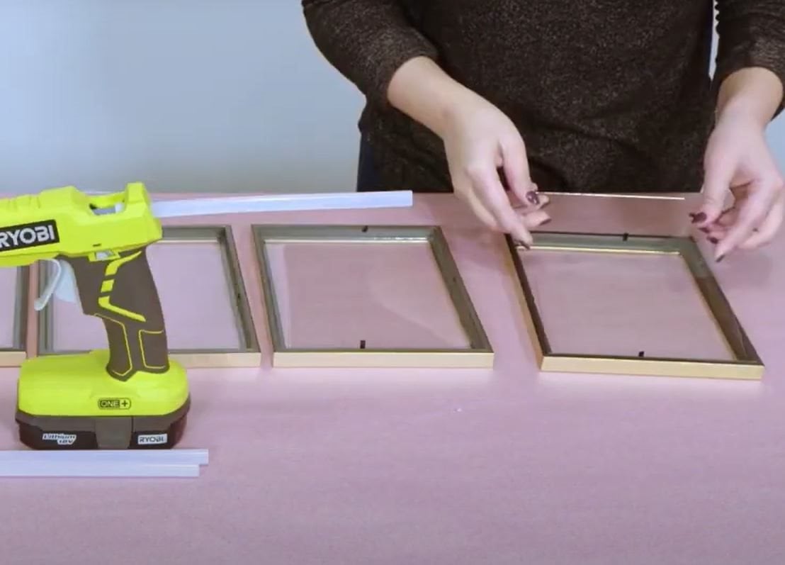 Amíg a ragasztópisztoly felmelegszik, óvatosan távolítsa, a kartont az üveg keretről.