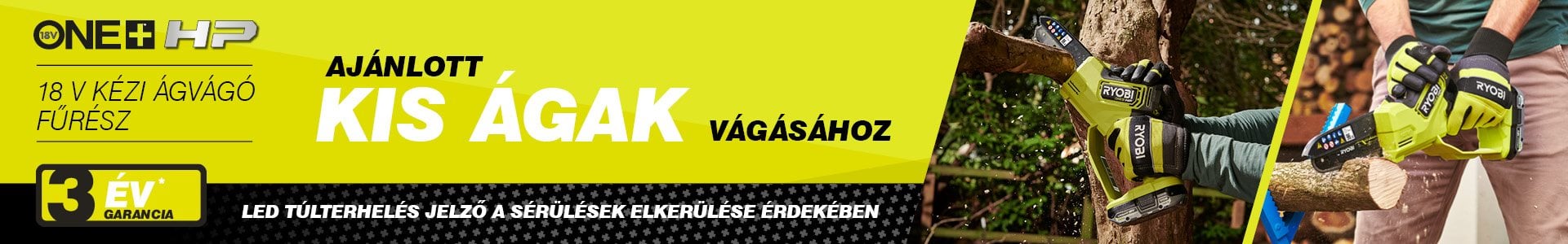 A RY18PSX15A-120 egy kezdőkészlet, amely tartalmazza a 18V ONE+™ HP 15 cm-es metszőfűrészt, 1 db 2,0 Ah-s akkumulátort és 1 db töltőt.