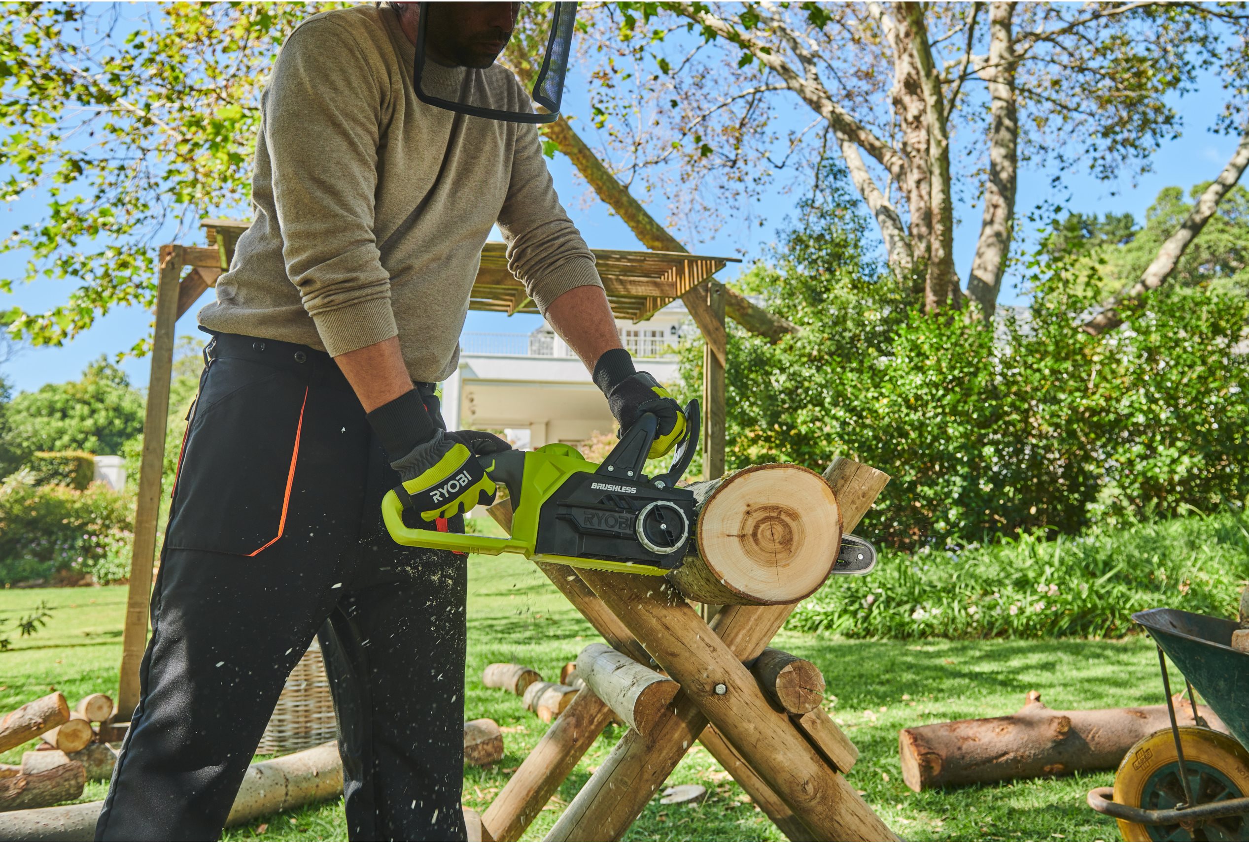 A 18V ONE+™ szénefe nélküli 30 cm-es láncfűrész tökéletes eszköz közepes méretű rönkök, ágak és egyéb faanyagok vágásához.