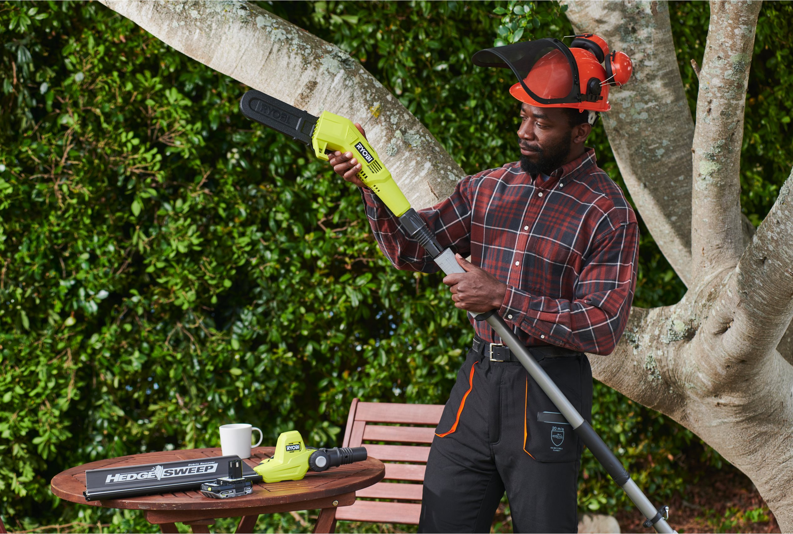 Az 18V ONE+™ 20 cm-es teleszkópos fűrész és 45 cm-es sövénynyíró tökéletes a nehezen elérhető ágak és sövények metszéséhez, így nem kell létrát használnod a lelógó ágakhoz és magas sövényekhez.