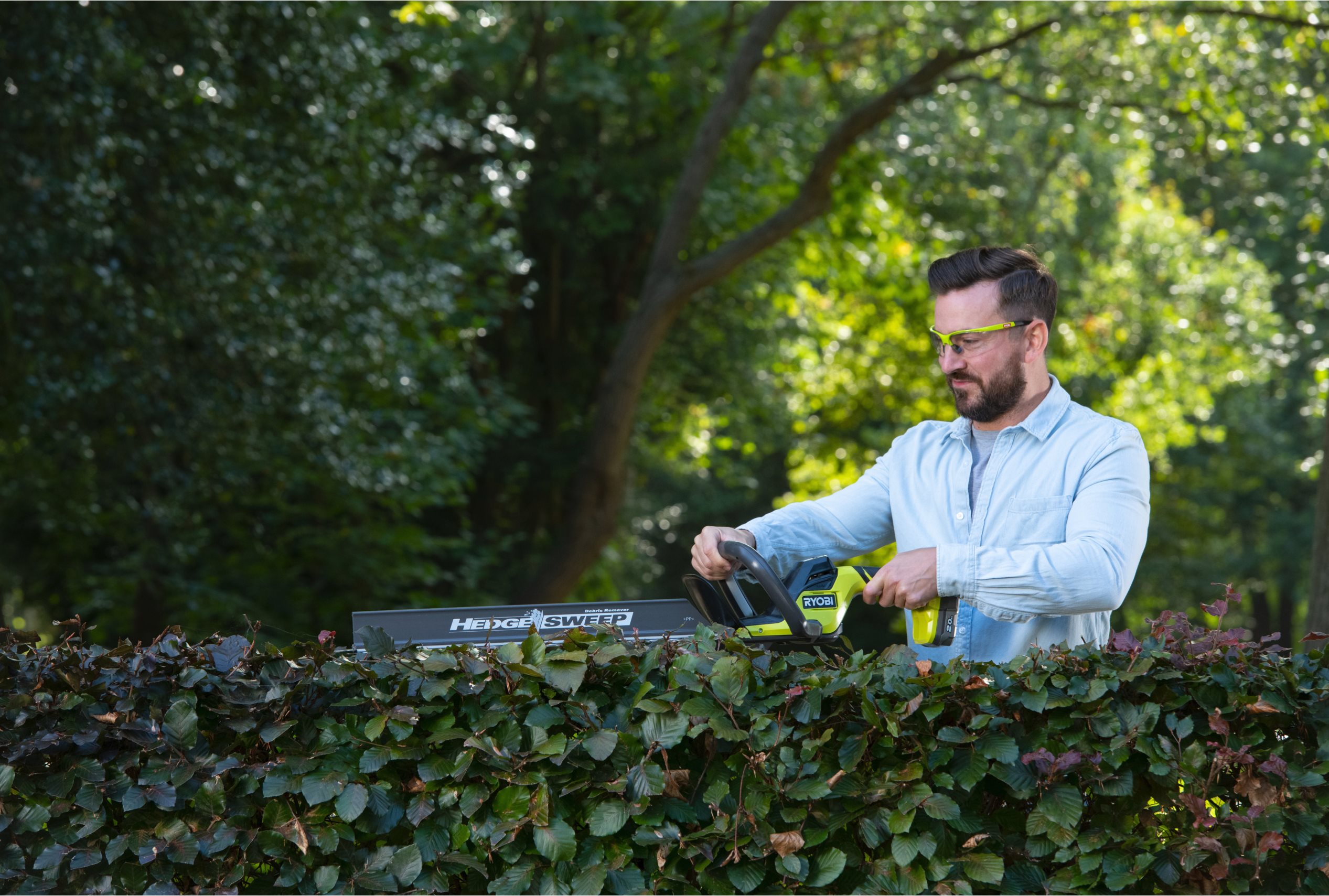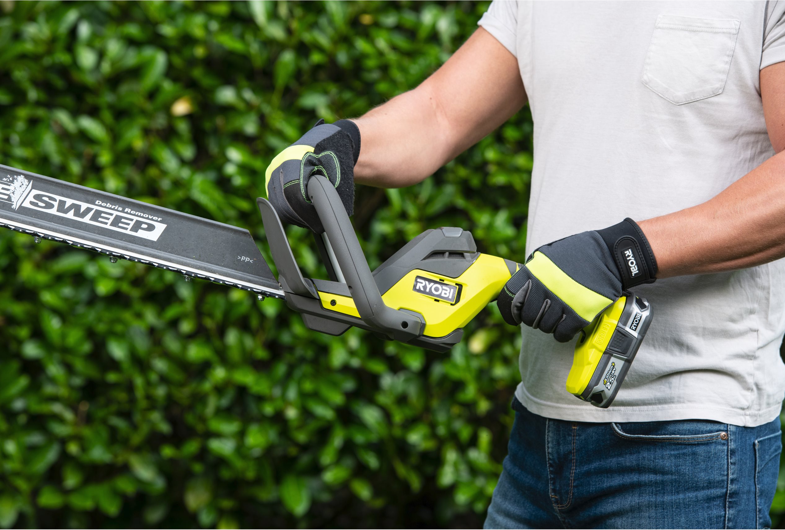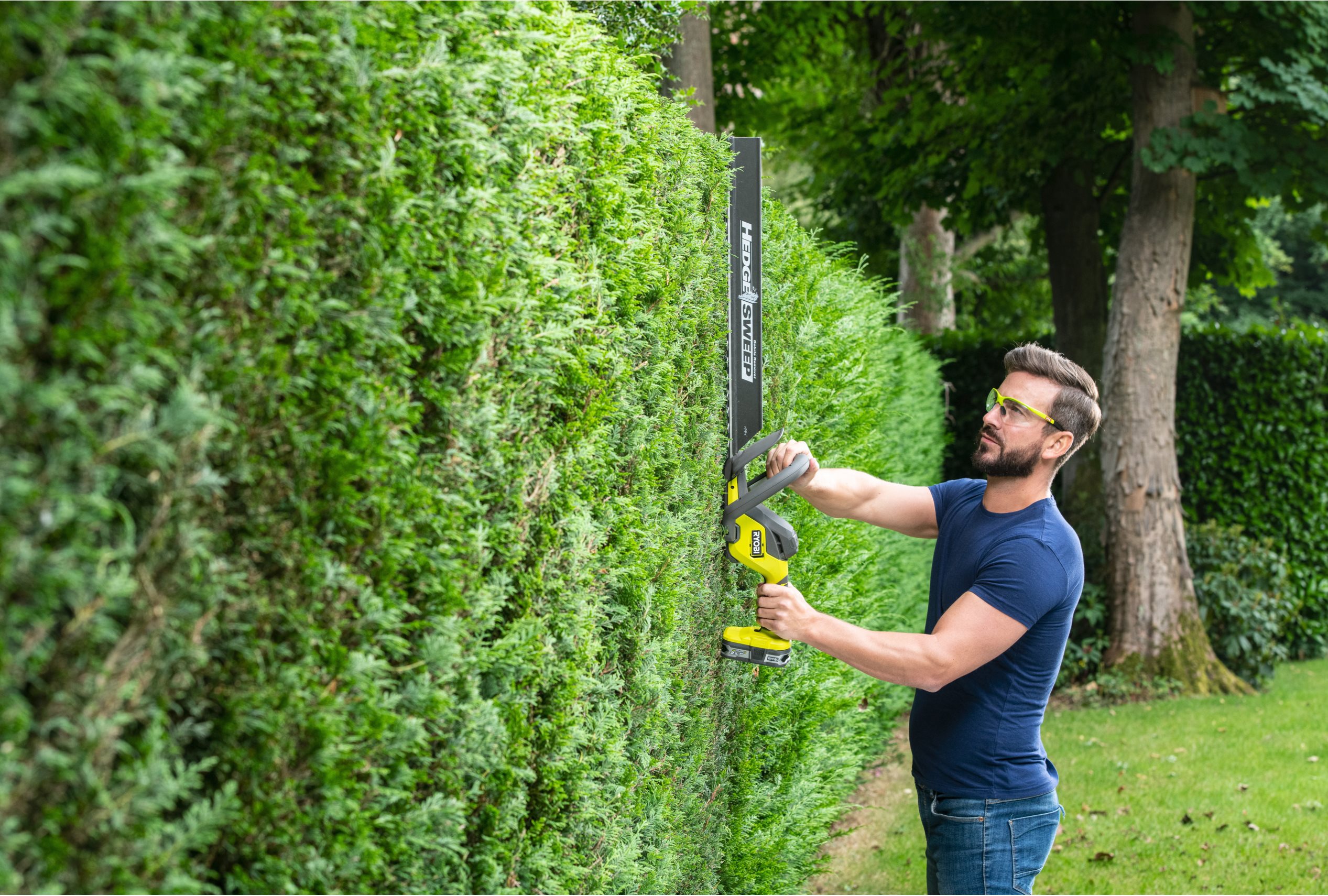 Az 18V ONE+™ vezeték nélküli 55 cm-es sövényvágó ideális közepes és nagy sövények, mint a babér, fenyő formázásához és karbantartásához.
