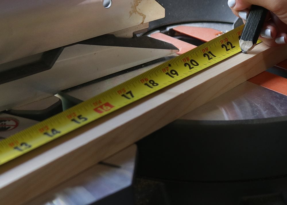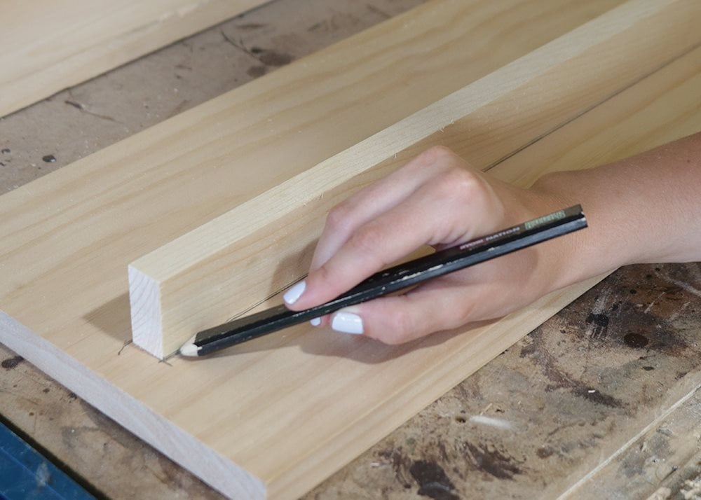 Vágd a 30 cm x 5 cm-es deszkát egy 53 cm hosszú tartódeszkává.
