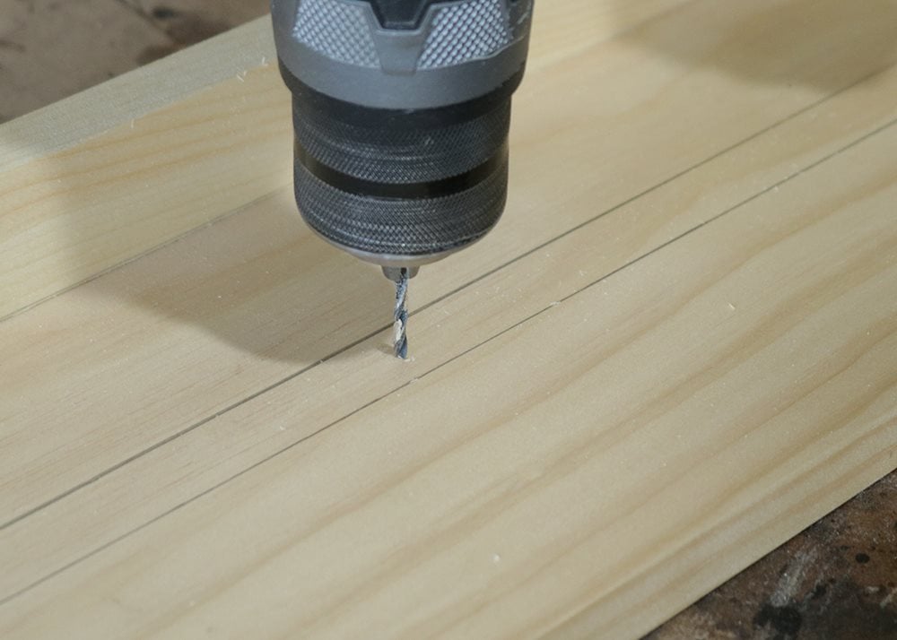 Fúrj előfa hátsó táblába. Ez segít a tartógerenda rögzítésében a fa felhasadása nélkül.