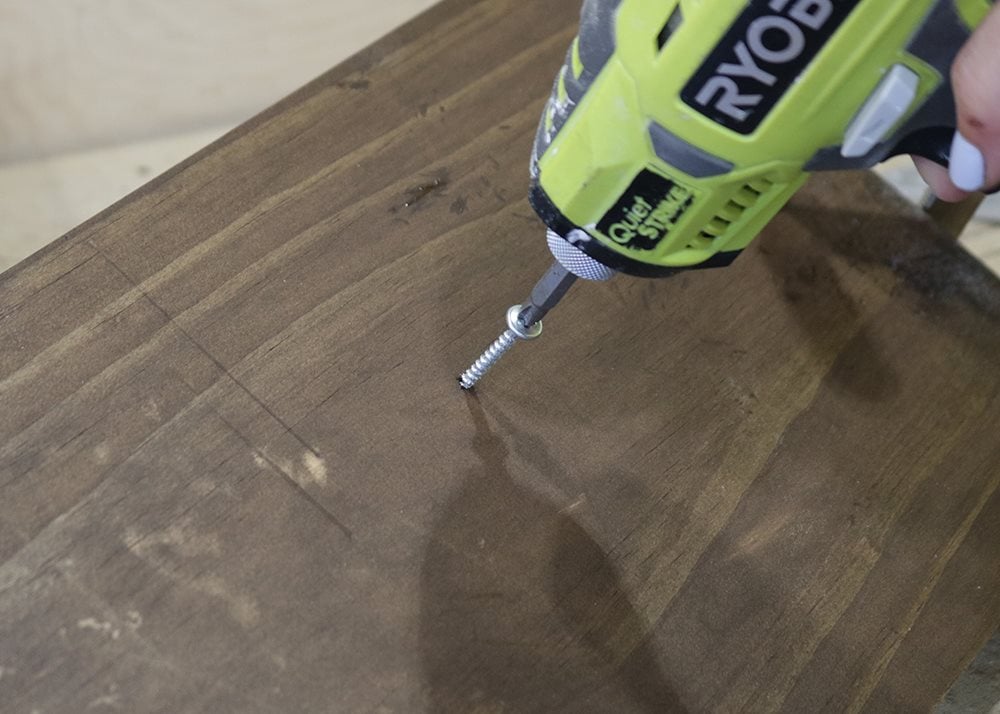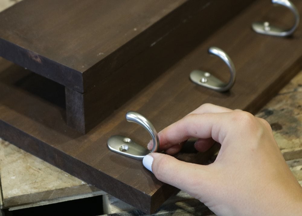 Rögzítsd a tartógerendát a fogas hátsó lapjához úgy, hogy egy 6,5 mm-es facsavart csavard a darab hátuljába. Használj faragasztót az elülső részhez az erősebb kötés érdekében.