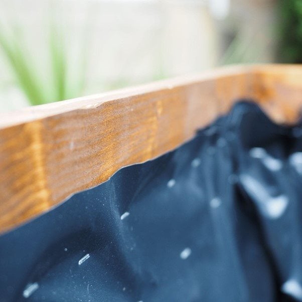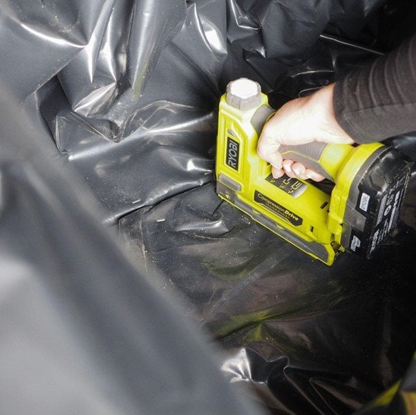 Béleld ki a virágtartó láda belsejét a műanyag lappal. Simítsd el a belsejéhez, amennyire csak tudod – nem kell tökéletesnek lennie!