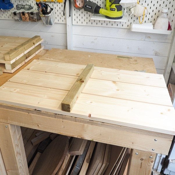 A folyamat nagyon hasonló a két hosszú oldalsó panel esetében, kivéve, hogy ezúttal három 18 mm x 144 mm-es @ 800 mm-es darabot használjunk, és rögzítsünk egy 38 mm x 38 mm-es 400 mm-es pálcát a közepén panelenként, ahelyett, hogy mindkét oldalon kettő lenne.